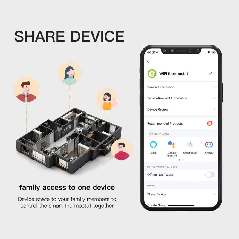 Den smarte termostaten BHT-002 er utviklet for å gjøre styringen av fyringsanlegget enklere, mer presis og mer praktisk i hverdagen. Den moderne utformingen, det kompakte veggmonterte formatet og den 3,0-tommers LCD-berøringsskjermen gjør den til et praktisk tilskudd i boliger, leiligheter, kontorer og lignende innendørsarealer. Med tydelig temperaturvisning og smarte tilkoblingsmuligheter hjelper den deg med å regulere inneklimaet med mindre innsats.