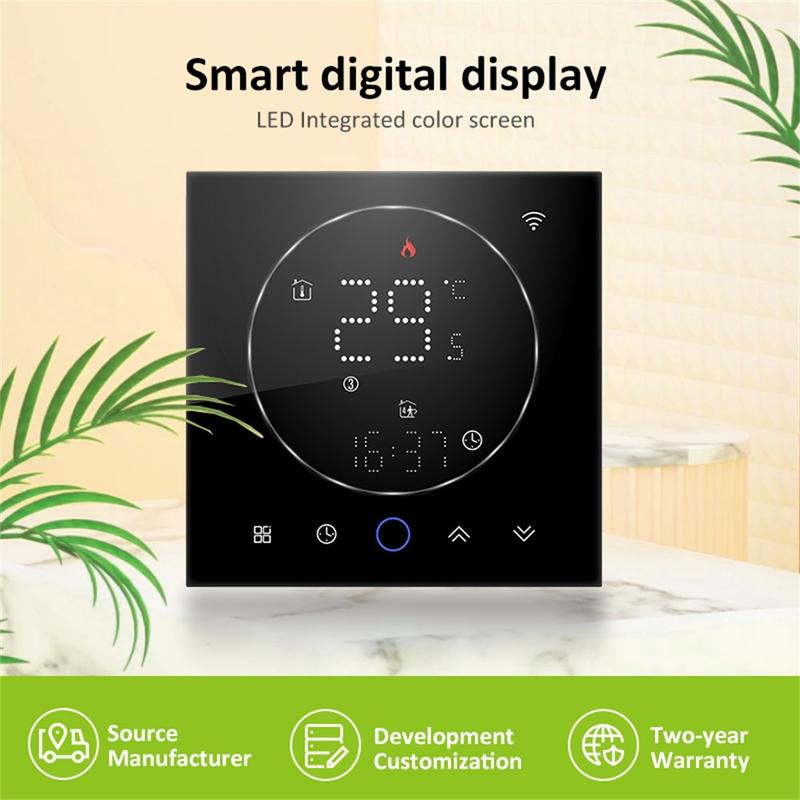 BHT-008GCL Smart-termostaten tilbyr en blanding av presisjon, bekvemmelighet og moderne design, noe som gjør den til et utmerket valg for huseiere som ønsker å oppgradere varmestyringssystemene sine. Kompatibiliteten med et bredt spenningsområde og standard installasjonsbokser sikrer enkel integrering, samtidig som den nøyaktige temperaturstyringen bidrar til energibesparelser og økt komfort.