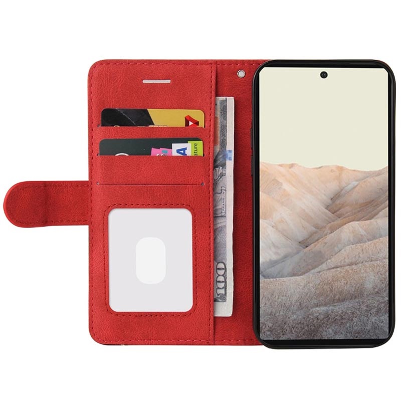 Lommebokdesign gir lagring for kredittkort og kontanter, mens Google Pixel 6 får fullstendig beskyttelse mot slitasje og daglig skade. En avtakbar snor gir ekstra sikkerhet, og en sammenleggbar rygg gjør det mulig å se på video håndfritt.