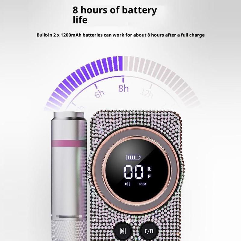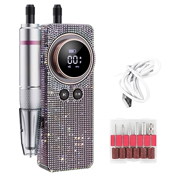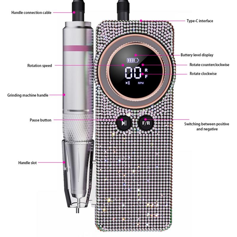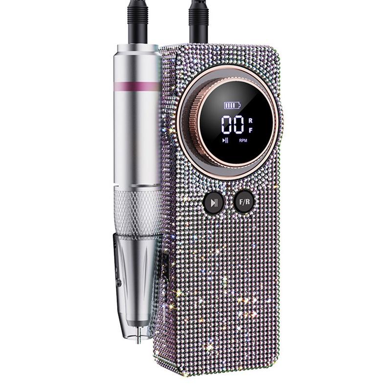BLUEQUE BQ-108 elektrisk neglefil med diamantdesign for gel og akryl - oppladbar neglefil med 35 000 o/min og LCD-skjerm