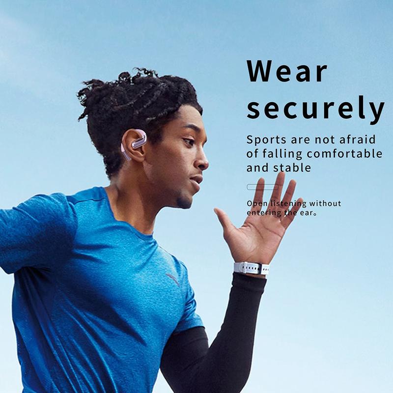 - Avansert design med åpne ører: Sikker og komfortabel passform som gjør at du kan være oppmerksom på omgivelsene dine, noe som gjør disse hodetelefonene ideelle for utendørsaktiviteter og treningsøkter.