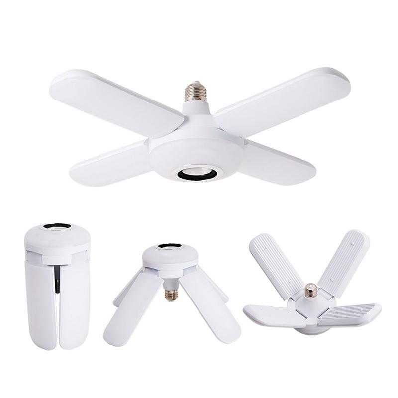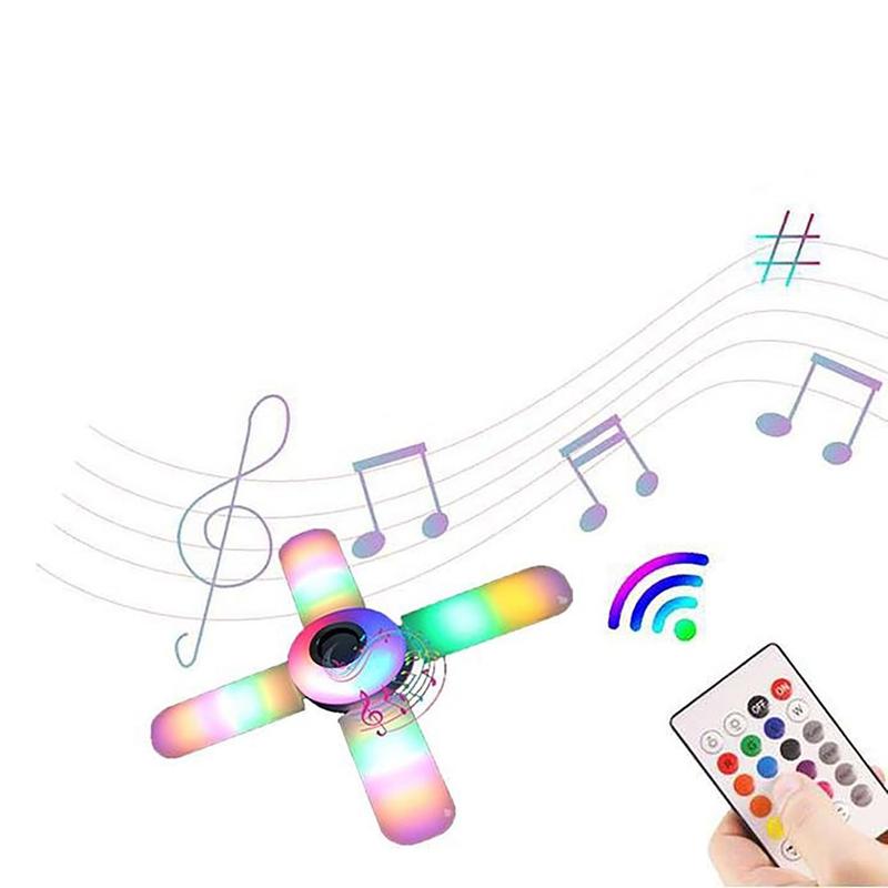 E27 Bluetooth-taklampe med musikk - sammenleggbar RGB-fargeskiftende lampe med 4 blader og høyttaler