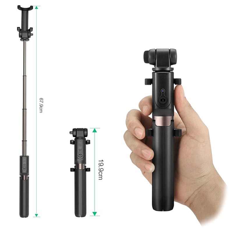 Det kan være en tøff oppgave å ta bra selfier, særlig hvis det er flere personer på bildet. Ofte blir noens hode "kuttet av", ellers ser man forvrengt ut. Med denne universelle selfiestangen med et trebent stativ, er det superenkelt å ta gruppebilder. Armen kan forlenges til opptil 67.9cm. hvilket gjør den mest mulig praktisk.