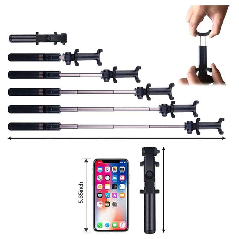 Selfiestangen kan legges sammen til en miniatyrstørrelse, den er ikke større enn en smarttelefon og dermed kan du ta den med i lommen eller vesken. 2-i-1 designen gjør at du ikke trenger å ta med flere tilbehør.