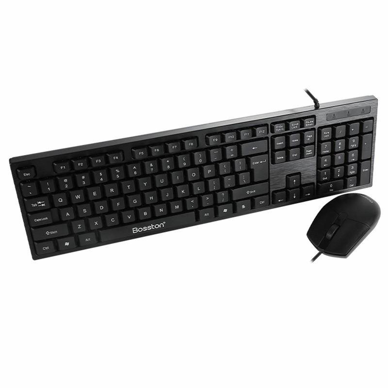 Bosston D5200 USB-tastatur med kabel og ergonomisk mus med 1000 DPI