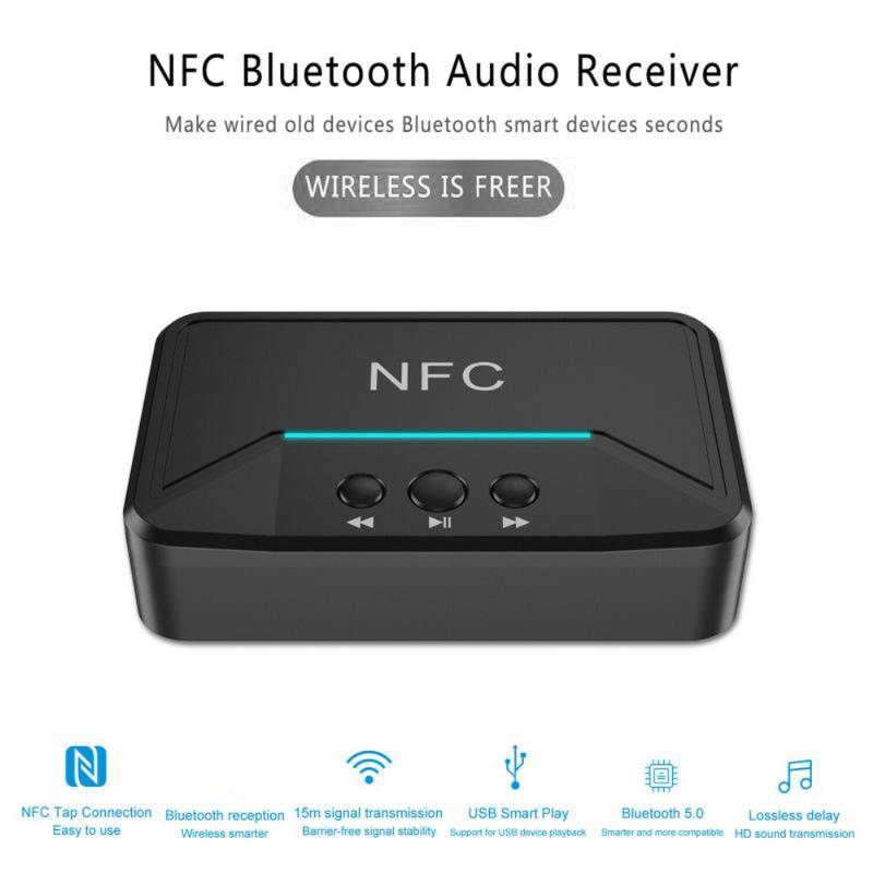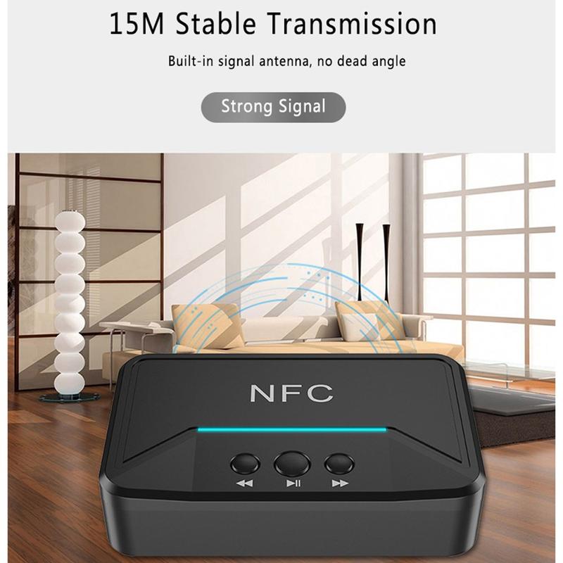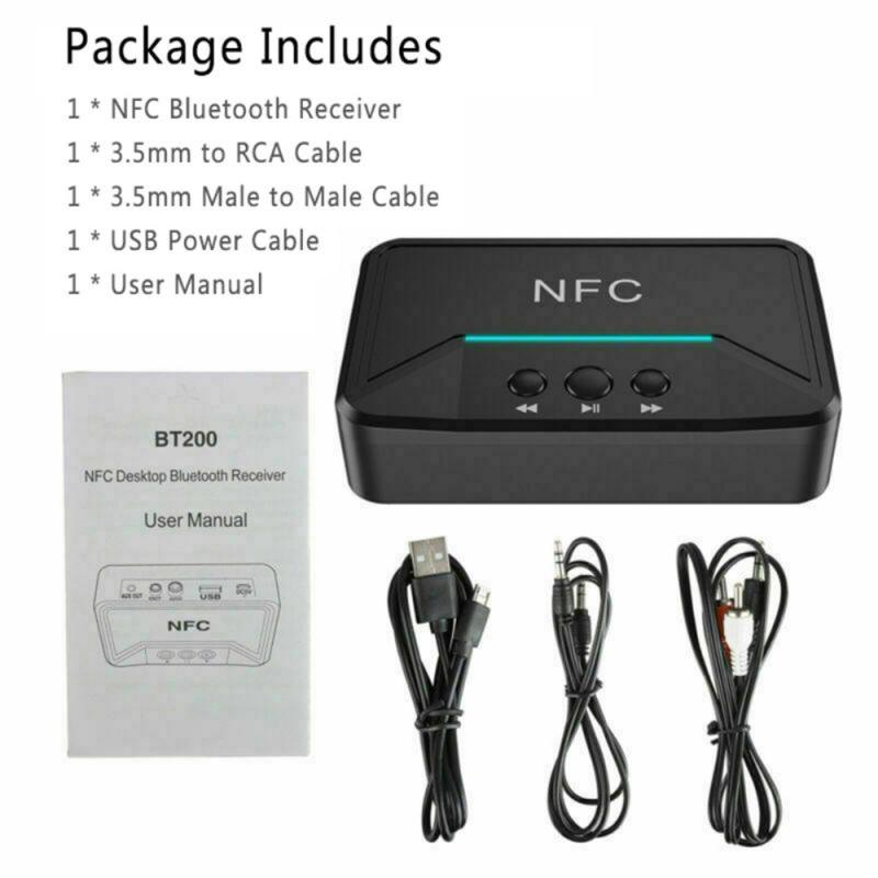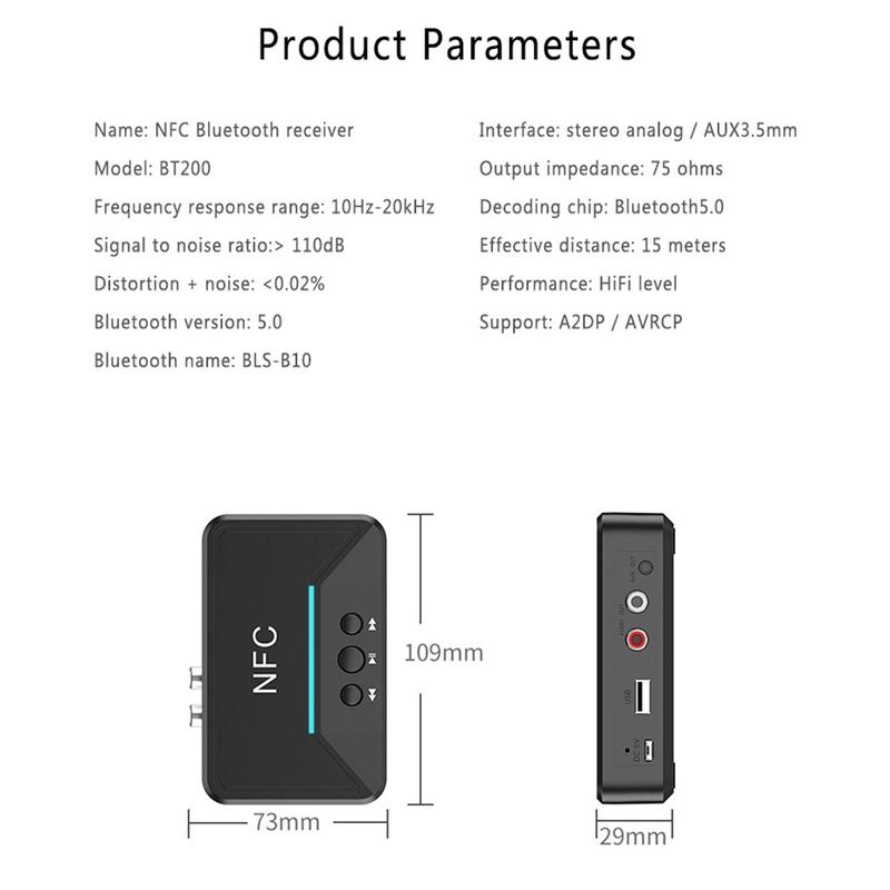 BT200 NFC Bluetooth 5.0-lydmottaker - AUX 3.5mm og RCA-adapter med A2DP, USB-strøm, automatisk av/på for bil- og hjemmestereo (15 m rekkevidde)