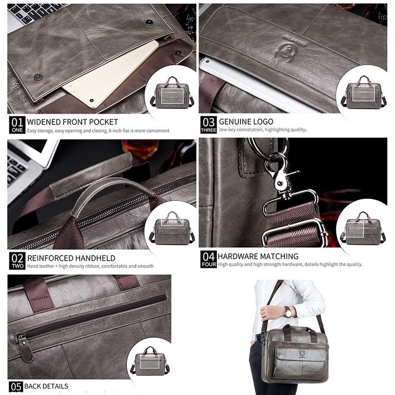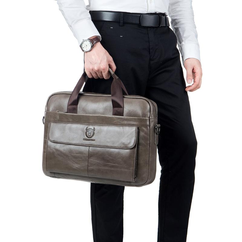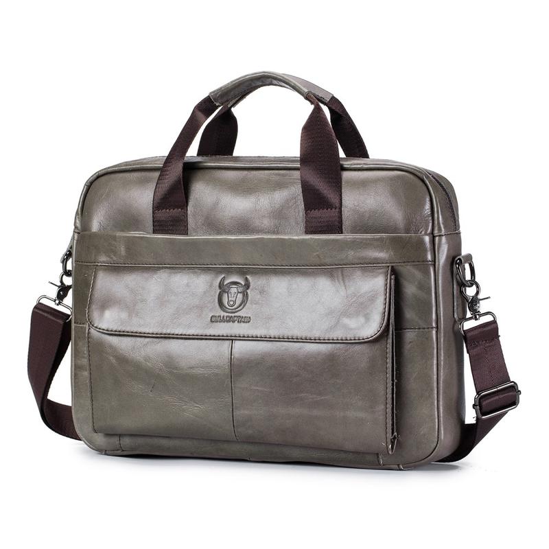 Bullcaptain 046 Laptop- og crossbody-veske i skinn for menn - topplag okseskinn