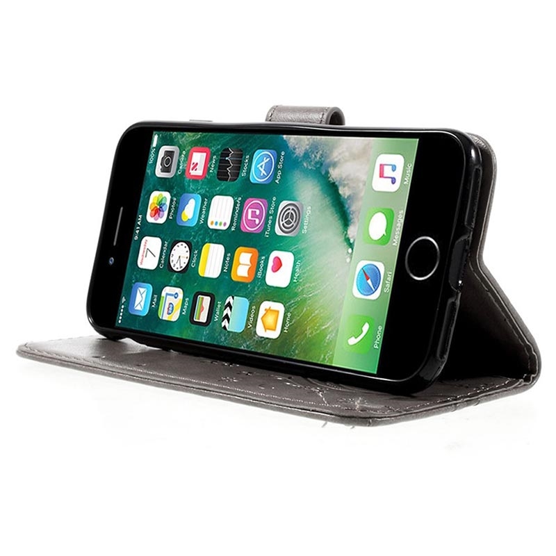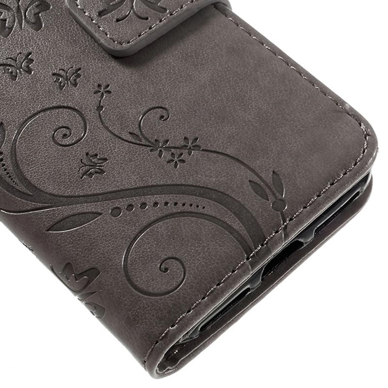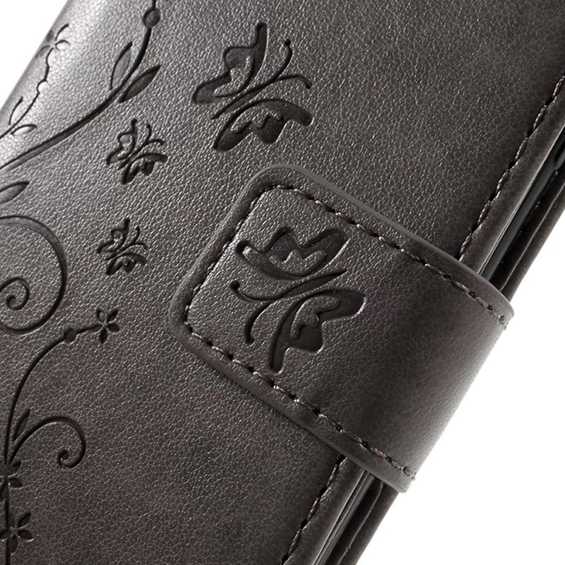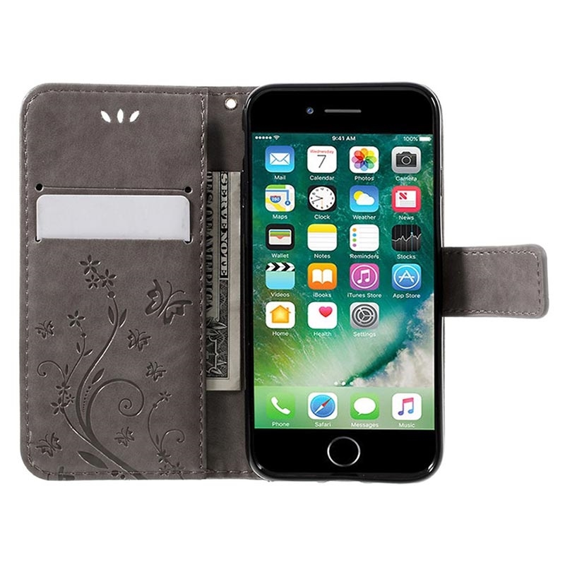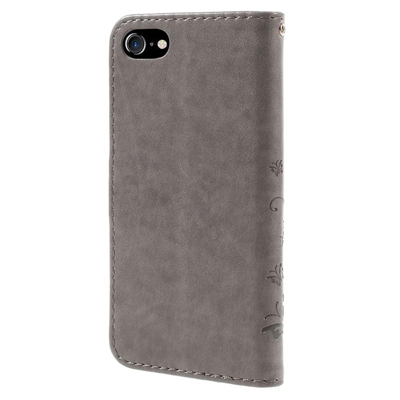 Denne smukke Imprint Butterfly Flower Læderpung til iPhone 7 kombinerer stil og funktionalitet på en måde, der gør den til et must-have tilbehør... Med sit elegante grå design og praktiske funktioner, er denne pung det perfekte valg for enhver, der ønsker å beskytte sin iPhone 7 med stil.