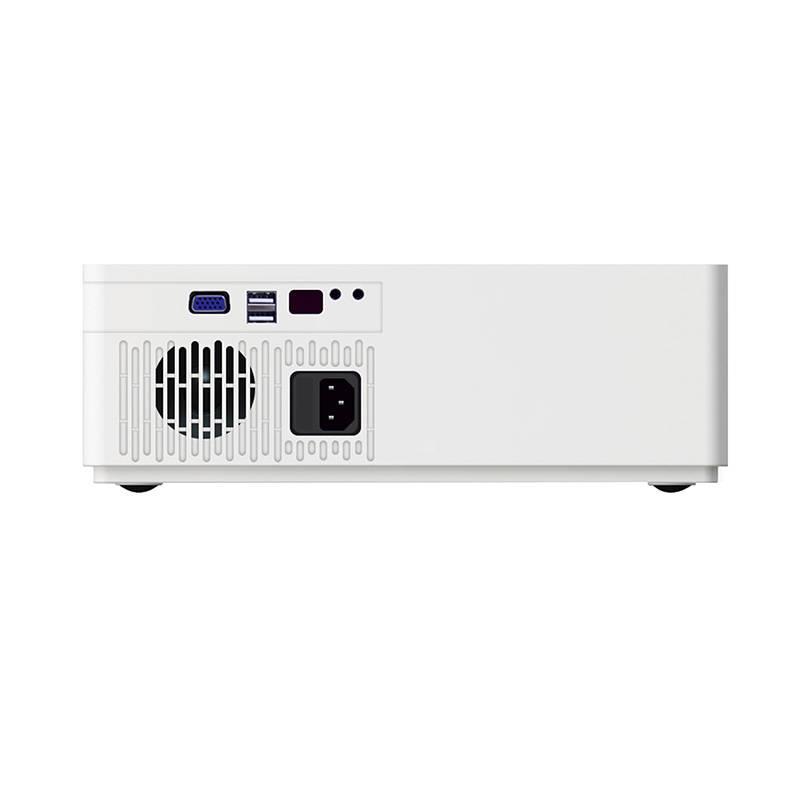 BYINTEK K20 Basic-projektoren er utstyrt med en trapesformet korreksjonsfunksjon, slik at du kan korrigere feil som er gjort når du setter opp enheten. En elektronisk zoom er også tilgjengelig, i tillegg til en rekke porter som HDMI, AV, Mini Jack 3,5 mm, SD, USB 2.0 og VGA.