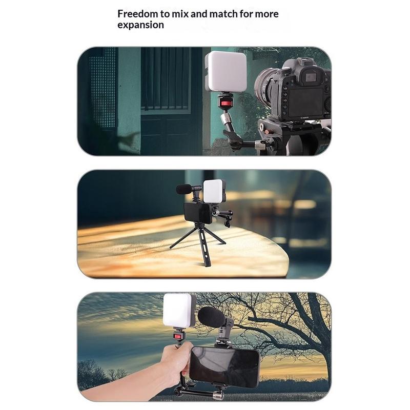 Det doble kulehodedesignet gir 360° justering for mer presis posisjonering, mens standard 1/4" gjenger i begge ender gjør den kompatibel med et bredt utvalg av utstyr. Armen er laget av aluminiumslegering og har en solid og holdbar konstruksjon, samtidig som den er lett nok til å være enkel å bære og bruke til daglig.