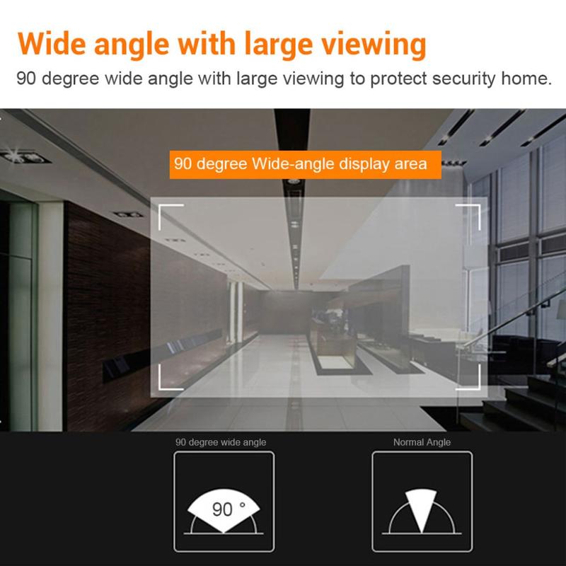 90°-objektivet gir et bredt synsfelt, slik at du kan se besøkende og omgivelsene tydeligere enn med et tradisjonelt kikkhull.
