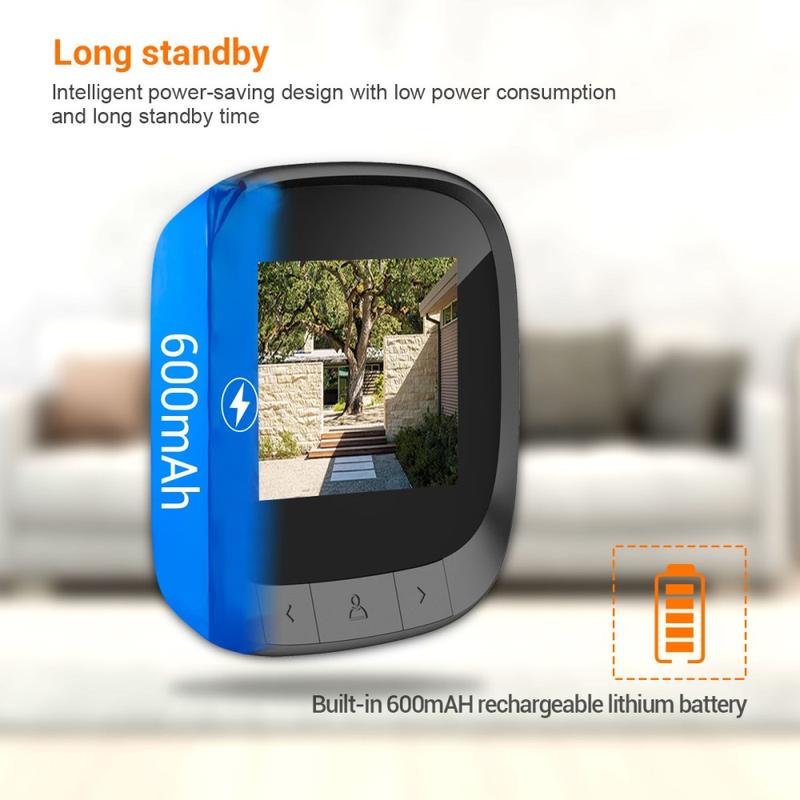 Denne kompakte dørspionen drives av et innebygd litiumbatteri på 600 mAh, som gir lang driftstid uten hyppig lading.