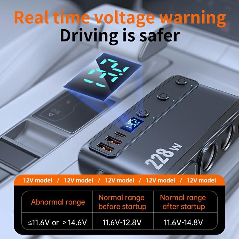 Hold alle enhetene dine med strøm når du er på farten med C35L 3-i-1 hurtigladende billader med uttrekkbar kabel. Denne billaderen har en total effekt på 228W og støtter flere enheter samtidig, inkludert smarttelefoner, nettbrett, dashbordkameraer, oppvarmede seteputer, bilkjøleskap og mye mer. En innebygd digital spenningsvisning holder deg oppdatert om bilbatteriets tilstand i sanntid, mens den uttrekkbare Type-C-kabelen gir fleksibilitet og bekvemmelighet. C35L har smart ladeteknologi med støtte for PD, QC3.0, Samsung AFC og Huawei FCP, og distribuerer strøm trygt og effektivt. Med flammehemmende konstruksjon, stabil antiskli-fiksering og individuelle portkontroller er den designet for både ytelse og sikkerhet under hver eneste kjøretur.
