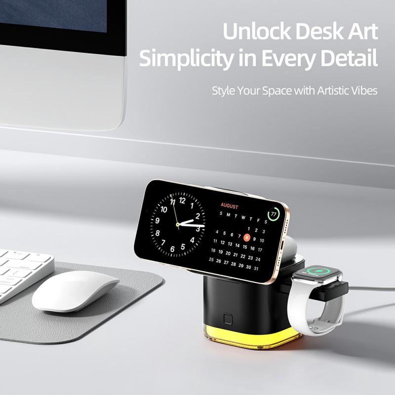 Denne laderen leverer bekvemmelighet, kraft og organisering i én elegant enhet. Med lading av flere enheter, smart justering, en innebygd kabel og omgivelsesbelysning reduserer den rotet samtidig som den tilbyr pålitelig hurtiglading der du trenger det.