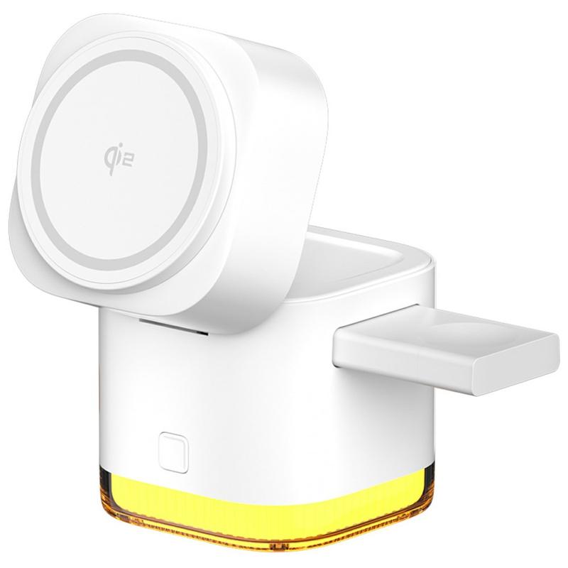 Laderen har magnetisk trådløs lading for kompatible smarttelefoner, og sikrer presis justering og stabil strømtilførsel. Enheter som støtter trådløs Qi-lading, kan enkelt plasseres på overflaten for effektiv lading på opptil 15 W, mens automatisk strømtilpasning optimaliserer ladehastigheten på en sikker måte.