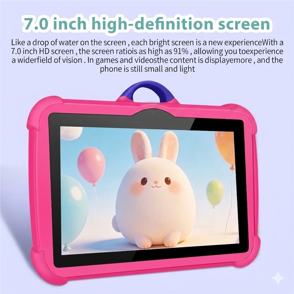Det slitesterke beskyttelsesetuiet beskytter nettbrettet mot uhellsfall, samtidig som det har et innebygd stativ for komfortabel håndfri visning. Med to kameraer og WiFi-tilkobling kan barn ta bilder, ta opp videoer og nyte enkle videosamtaler med familie og venner. Det større 4000 mAh-batteriet gir lengre brukstid, noe som gjør det praktisk for reiser, skoleaktiviteter eller daglig bruk hjemme.