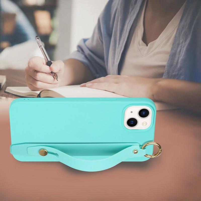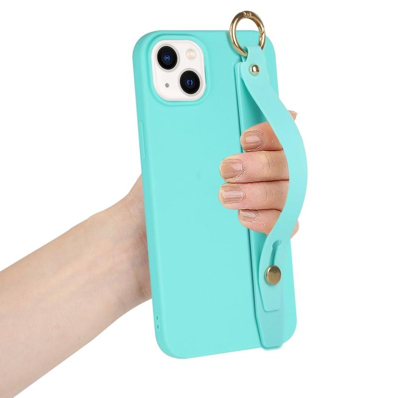 For iPhone 14 Plus Candy Color Phone TPU-deksel Anti-fall Anti-ripe-deksel med håndstropp Stativ