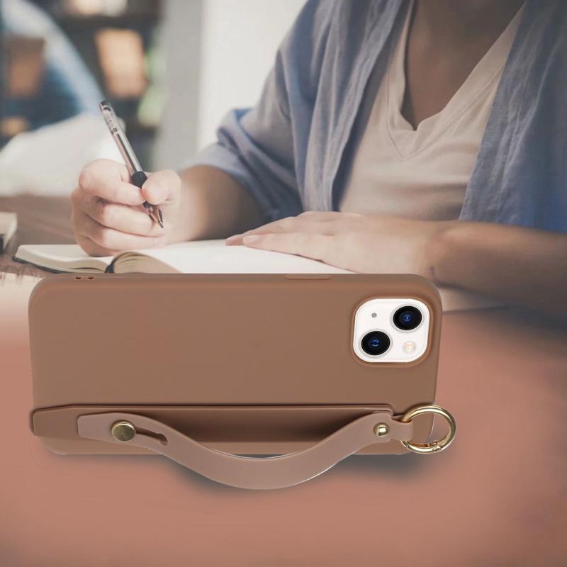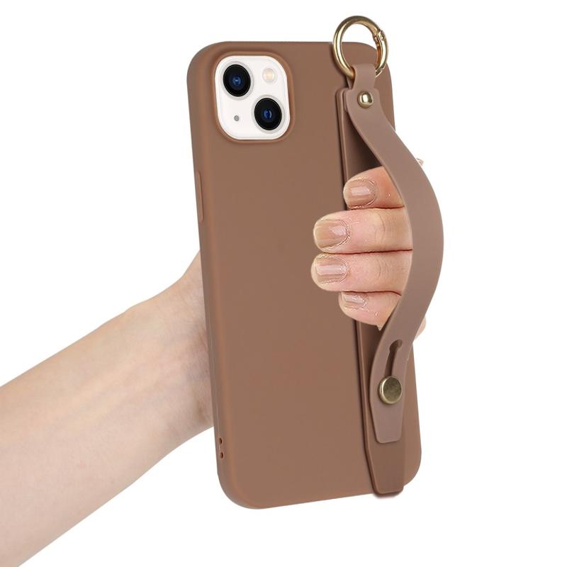 For iPhone 14 Plus Candy Color Phone TPU-deksel Anti-fall Anti-ripe-deksel med håndstropp Stativ