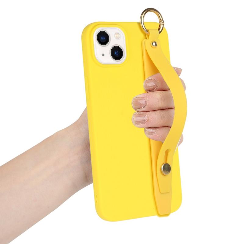 For iPhone 14 Plus Candy Color Phone TPU-deksel Anti-fall Anti-ripe-deksel med håndstropp Stativ