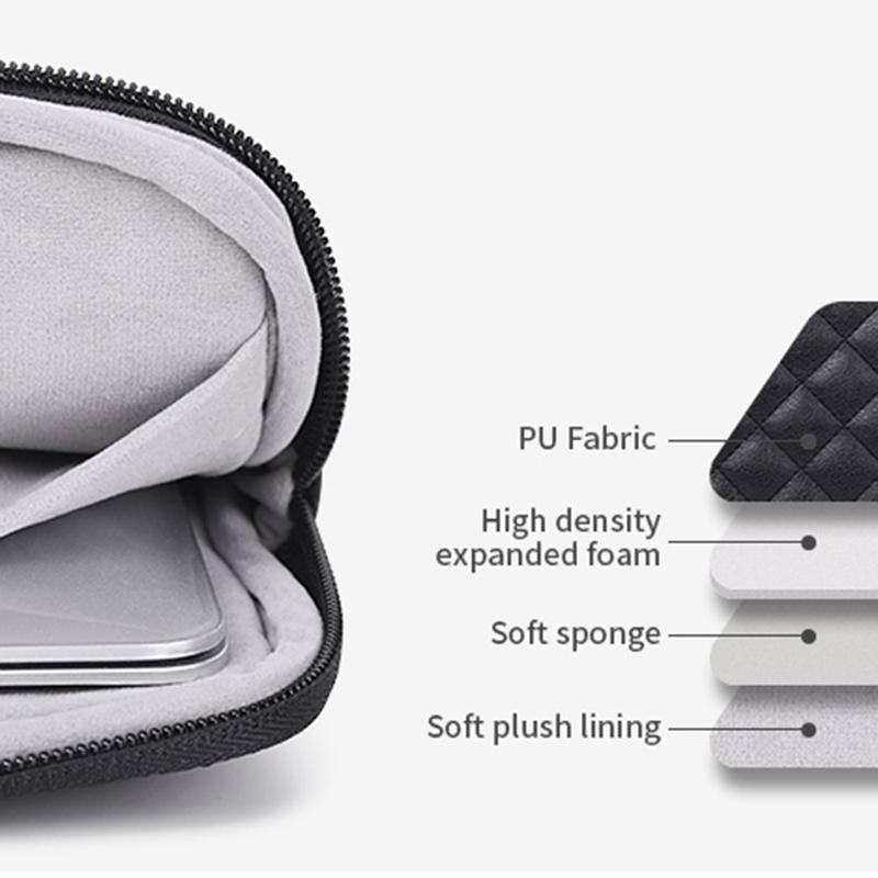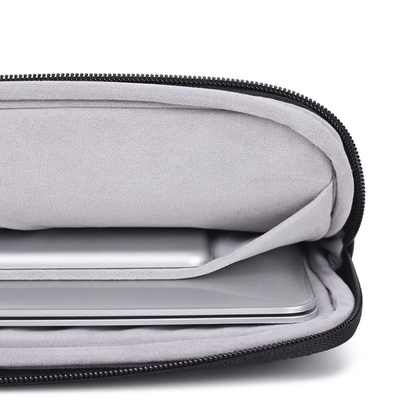 Ekspandert skum med høy tetthet, myk svamp og plysjfôr, slik at du unngår riper i den bærbare datamaskinen