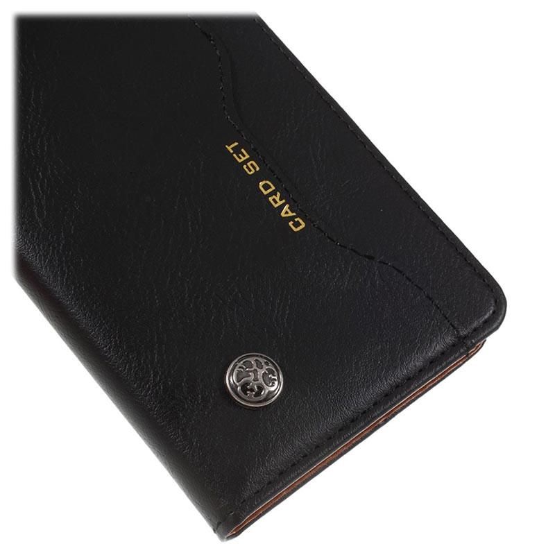 - Har tre rom for kort og en lomme for kontanter slik at du kan tømme lommene