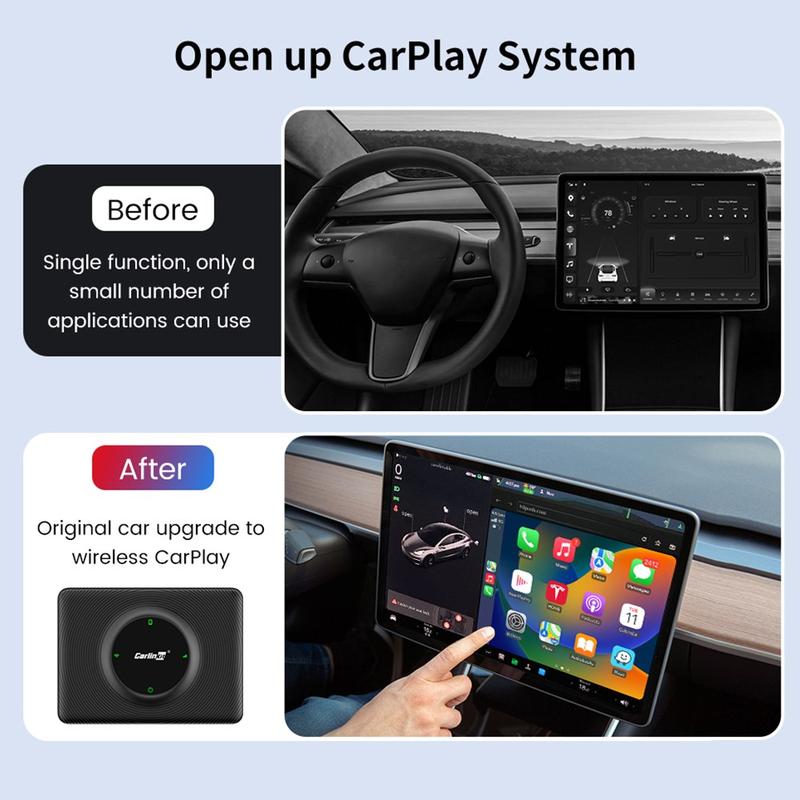 Tilbyr bekvemmelighet: Denne trådløse biladapteren kan synkronisere online kart, musikk, Siri osv. fra telefonen til den sentrale skjermen for en bedre kjøre- og reiseopplevelse.