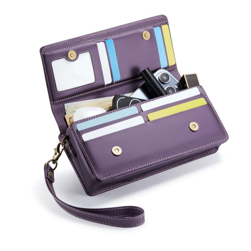 Caseme Me30 er praktisk utformet og har 7 kortplasser, 1 seddelrom, 1 lomme med glidelås og en dedikert fotoholder, slik at alle eiendelene dine er organisert og lett tilgjengelige. Den er kompatibel med smarttelefoner fra 4,0 til 7,5 tommer og passer perfekt til de fleste telefoner, noe som gjør den til den ultimate alt-i-ett-løsningen for dine daglige behov.