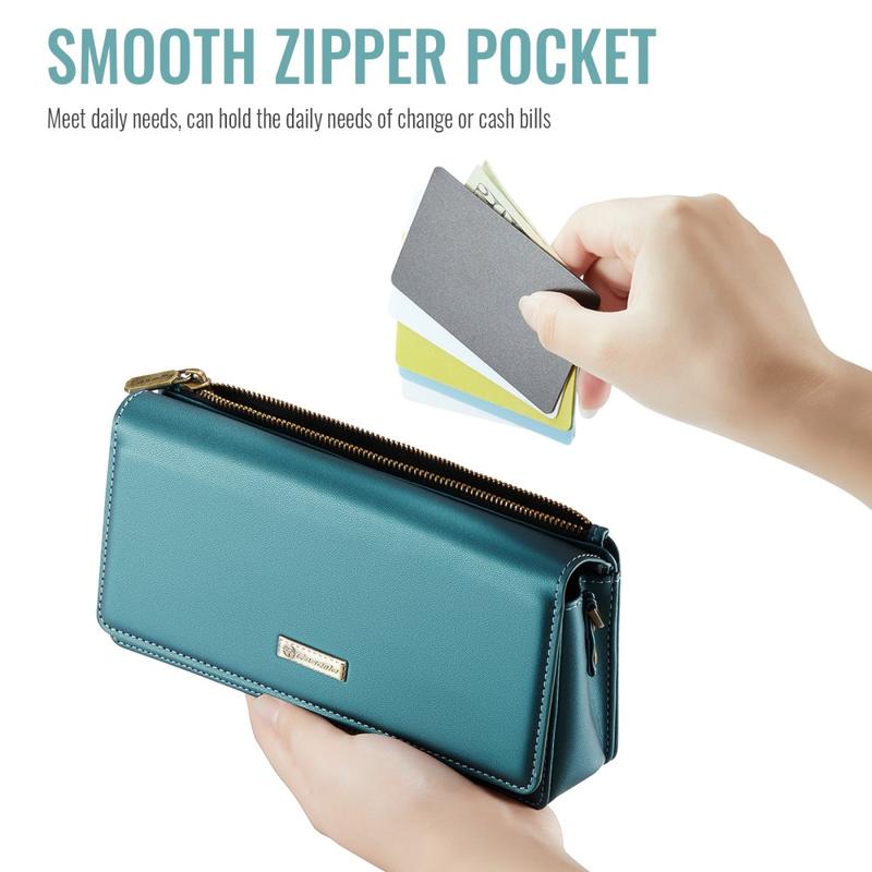 Caseme Me30 er praktisk utformet og har 7 kortplasser, 1 seddelrom, 1 lomme med glidelås og en dedikert fotoholder, slik at alle eiendelene dine er organisert og lett tilgjengelige. Den er kompatibel med smarttelefoner fra 4,0 til 7,5 tommer og passer perfekt til de fleste telefoner, noe som gjør den til den ultimate alt-i-ett-løsningen for dine daglige behov.