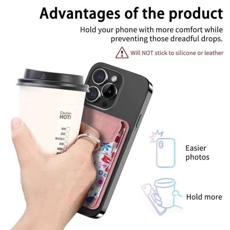 Denne kortholderen er ideell for brukere som ønsker praktiske løsninger uten å gå på bekostning av stil. Den holder kortene dine sikre, forbedrer håndteringen av telefonen med ringholderen og gir håndfri bekvemmelighet takket være kickstand-funksjonen. Det sterke magnetiske festet gir trygghet i daglig bruk, selv når du er på farten.