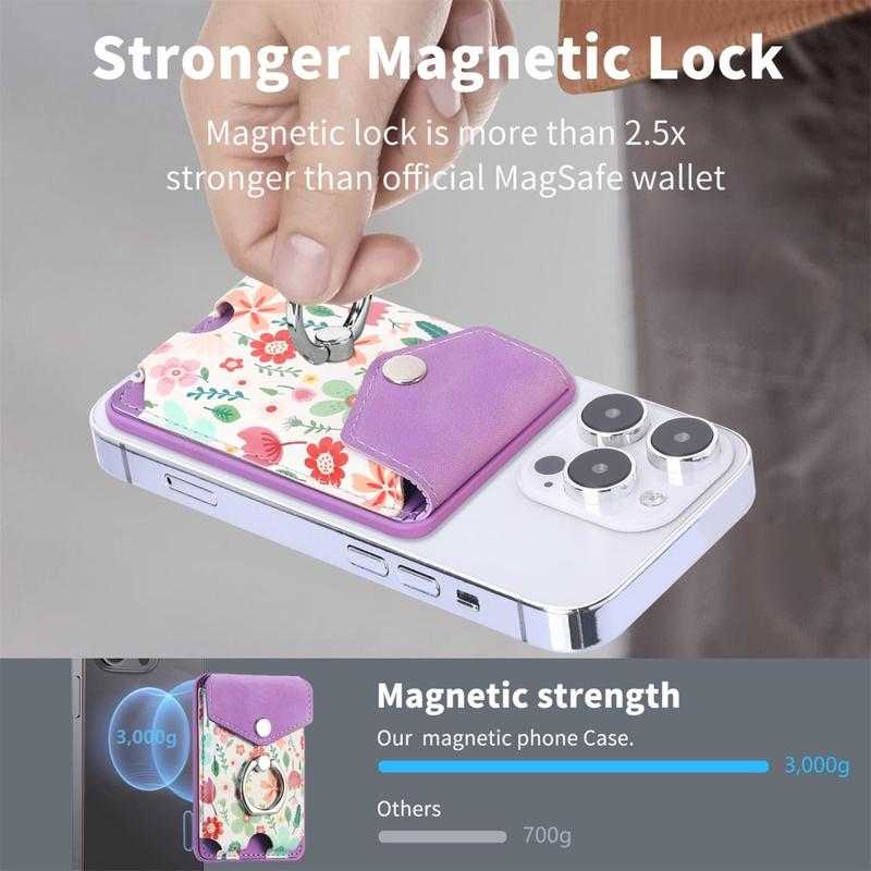 Denne kortholderen er ideell for brukere som ønsker praktiske løsninger uten å gå på bekostning av stil. Den holder kortene dine sikre, forbedrer håndteringen av telefonen med ringholderen og gir håndfri bekvemmelighet takket være kickstand-funksjonen. Det sterke magnetiske festet gir trygghet i daglig bruk, selv når du er på farten.