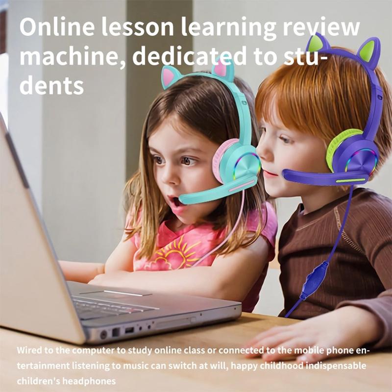 Cat Ears AKZ-020 Over-ear hodetelefoner med ledning for barn / spillhodesett med mikrofon, LED-lys - 115 dB, 40 mm