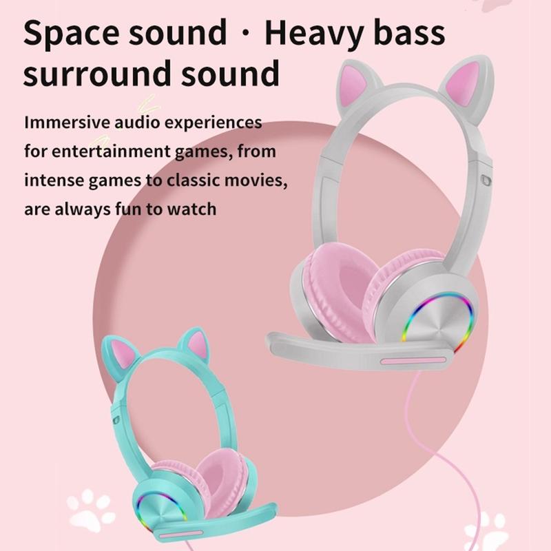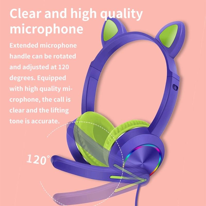 Gi spillopplevelsen en morsom vri med AKZ-020 LED Light Cat Ears Gaming Headset. Dette headsettet er designet med lekne katteører med LED-lys, og tilbyr oppslukende lydkvalitet og en komfortabel passform for lange spilløkter. Den innebygde mikrofonen sørger for tydelig kommunikasjon, noe som gjør det ideelt for spillere i alle aldre. Med en slitesterk, kablet tilkobling gir dette headsettet uavbrutt lydytelse for musikk, spilling og chatting.