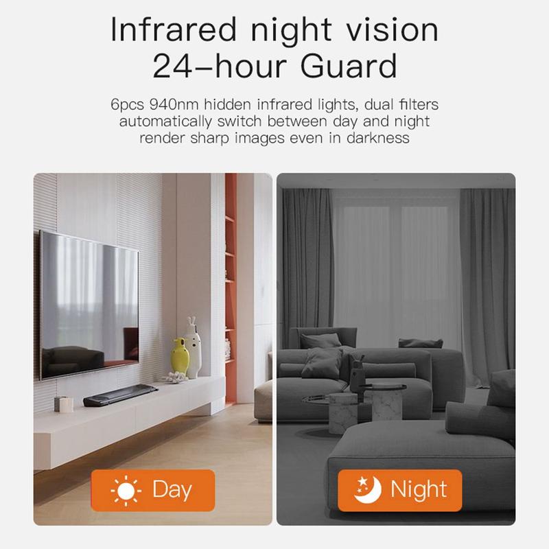 - Night Vision Two Ways - Seks usynlige 940 nm lysdioder ser 5-10 m i bekmørke; objektivet skifter automatisk til farge så snart lyset kommer tilbake.