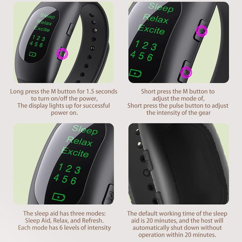 CES Mikrostrøms søvnhjelp armbånd - 3-modus søvnløshetsavlastende enhet med automatisk timer