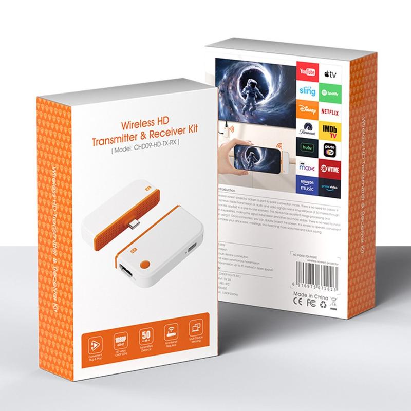 CHD09 trådløst skjermspeilingssett - USB-C til HDMI-sender og -mottaker, 1080p/60Hz, 50 meters rekkevidde, plug-and-play-skjermadapter