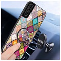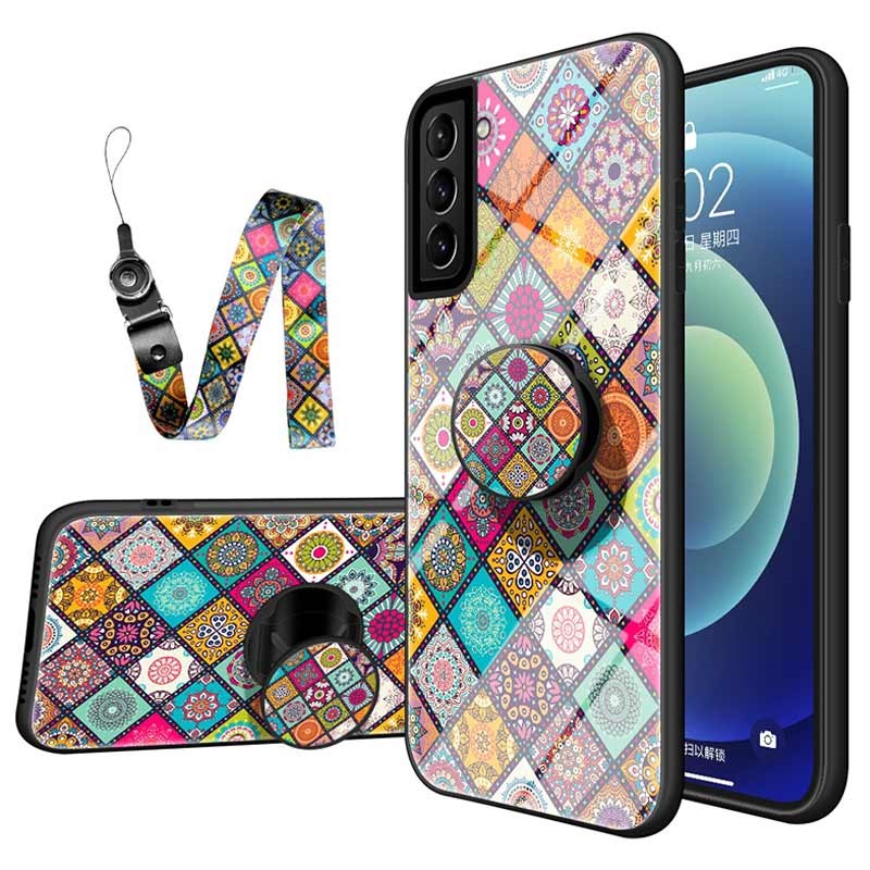 Hold Samsung Galaxy S21 5G fri for riper og støt ved hjelp av dette rutete mønsteret hybrid-dekselet. Dette fargerike blomstertrykket er her for å gjøre Samsung Galaxy S21 5G superstylish og supermodern. Den er designet med et stativ for å se på videoer og enhåndsbetjening. Den kommer også med en snor som gjør det lettere å bære når du er i mengden. Dette dekselet er laget av en kombinasjon av tre materialer: myk TPU, hard plast og glass. Unikt og slitesterkt, fascinerende - dette hybrid-dekselet med snor og stativ er et utmerket valg for din elskede Samsung Galaxy S21 5G.