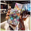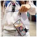 Checkered Pattern Hybrid-deksel med Stativ og Snor til Samsung Galaxy S21 5G
