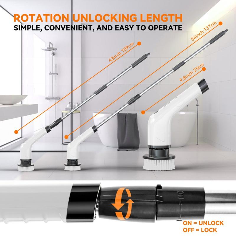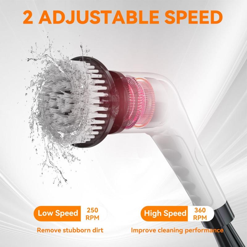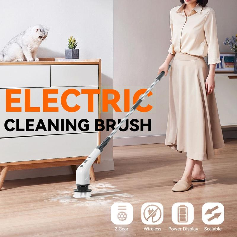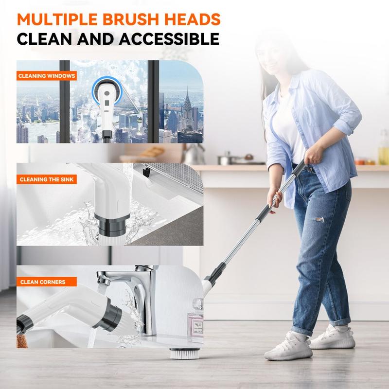 CLE-04 Trådløs elektrisk rengjøringsbørste med forlengelseshåndtak - 8-i-1 roterende skrubber, USB-C oppladbar, IPX7 vanntett