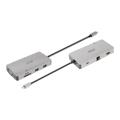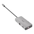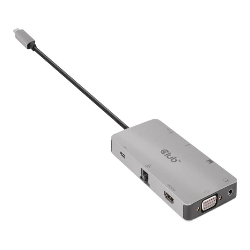 Club 3D CSV-1594 USB Gen1 Type-C 9-i-1-hub med HDMI, VGA, 2x USB Gen1 Type-A, RJ45, SD/Micro SD-kortspor og USB Gen1 Type-C hunnport, gir en svært avansert , effektiv løsning for å utvide en enkelt USB Gen1 Type-C-port til å være flere porter. Den integrerer video-, data- og strømporter som gjør det mulig å koble til 2 skjermer samtidig for å se videoer på en større skjerm, koble til flere USB Gen1-enheter for dataoverføring opptil 5 Gbps, koble til en Gigabit Ethernet-kilde for å koble PC-en til superhøy hastighet nettverk, eller koble til headset for å nyte fantastisk musikk. Den gir også PD-lading for støtte opp til maks. 100 W PD-lading. Dette er for å betjene denne enheten og lade verten samtidig. Den kan fungere på alle DP 1.2 Alt-modus støttede USB Gen1 Type-C-verter.