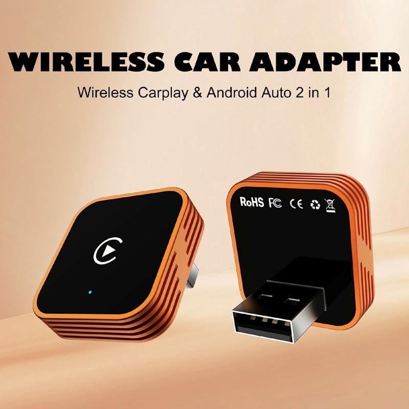 CP031-1 2-i-1 trådløs CarPlay- og Android Auto-adapter - oransje / svart