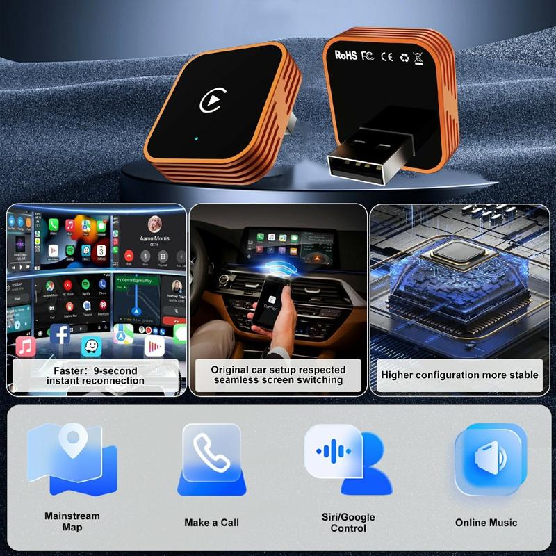 Denne adapteren drives av en Allwinner V821-brikke med DDR3-minne og er bygget for effektiv ytelse og rask gjenkobling. I henhold til de oppgitte spesifikasjonene støtter den 9 sekunders øyeblikkelig tilkobling og rundt 15 sekunders automatisk tilkobling ved start av kjøretøyet, noe som bidrar til å redusere ventetiden før bruk. Den bærbare størrelsen, det brede temperaturområdet og plug-and-play-oppsettet gjør den til et praktisk valg for sjåfører som ønsker en enklere og ryddigere smarttelefonopplevelse i bilen.