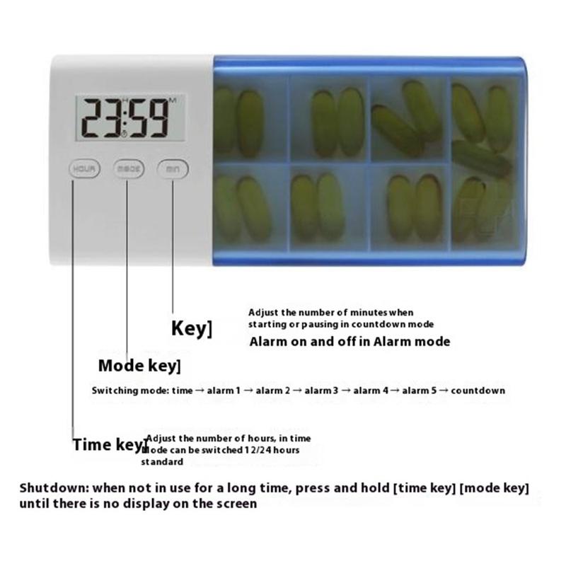 CR-250 Smart pilleholder med elektronisk timer og 7 rom - oppladbar, BPA-fri reisemedisinboks