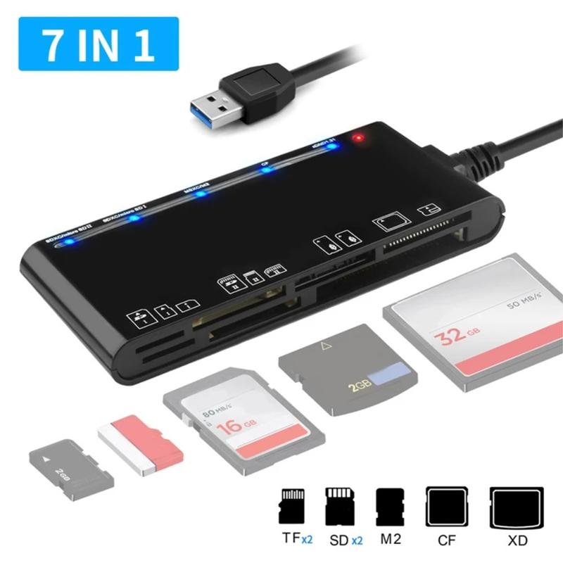 CR7 USB 3.0 multifunksjonell kortleser - rask dataoverføring for CF-, SD-, MS- og TF-kort - støtte for Mac, Windows og Linux