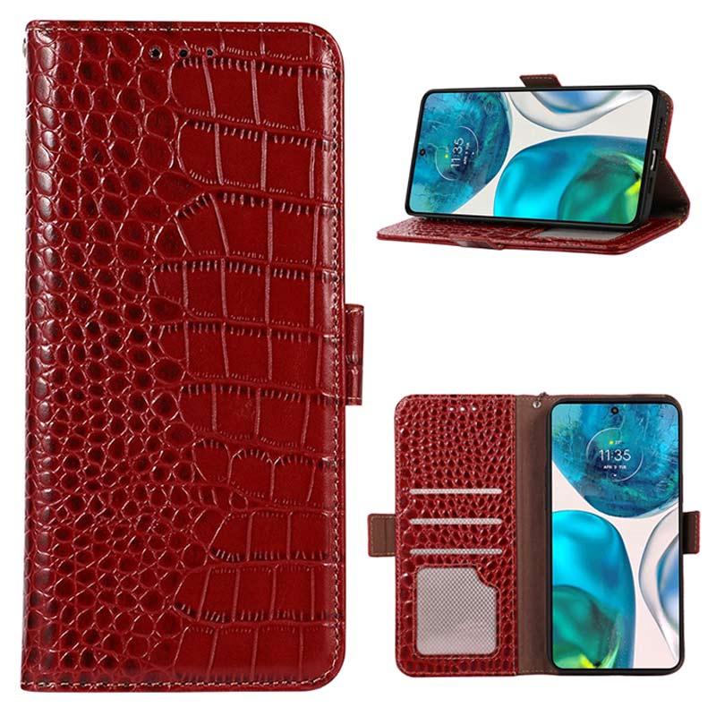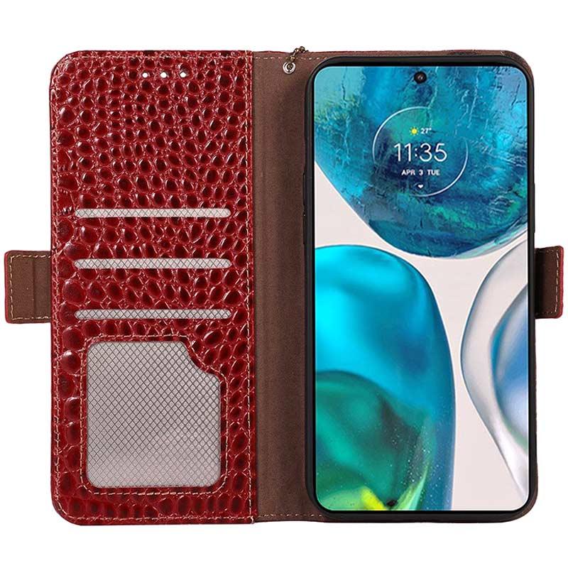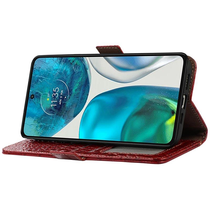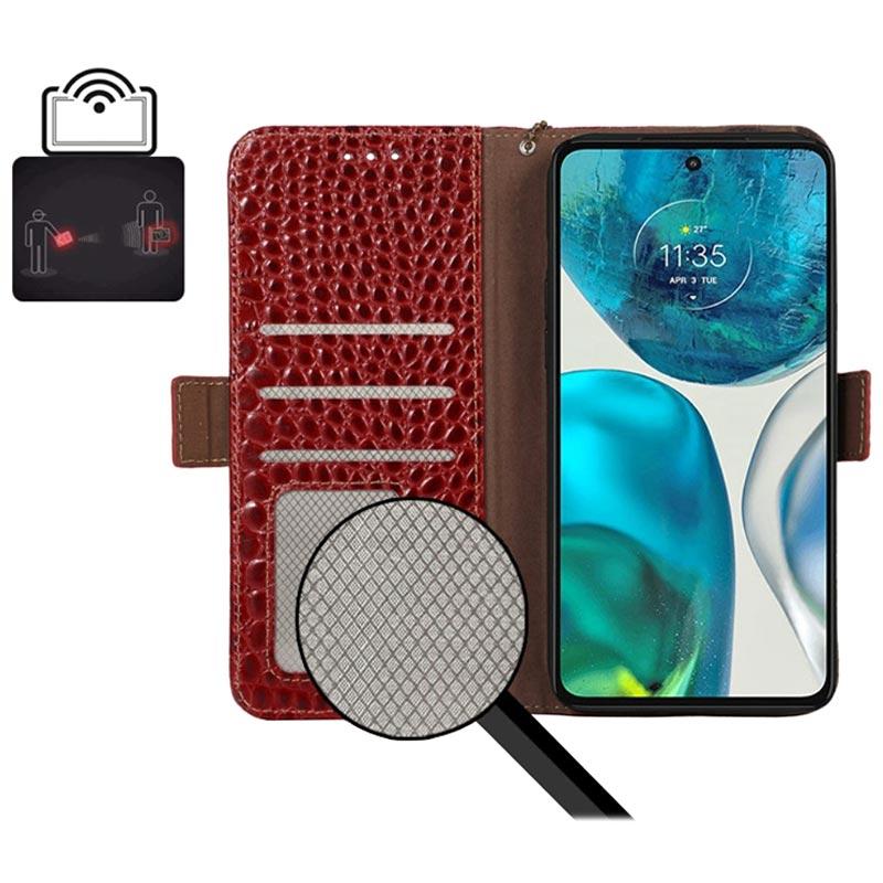 Crocodile Series Lommebok-deksel i Lær med RFID til Motorola Moto E22, Moto E22i