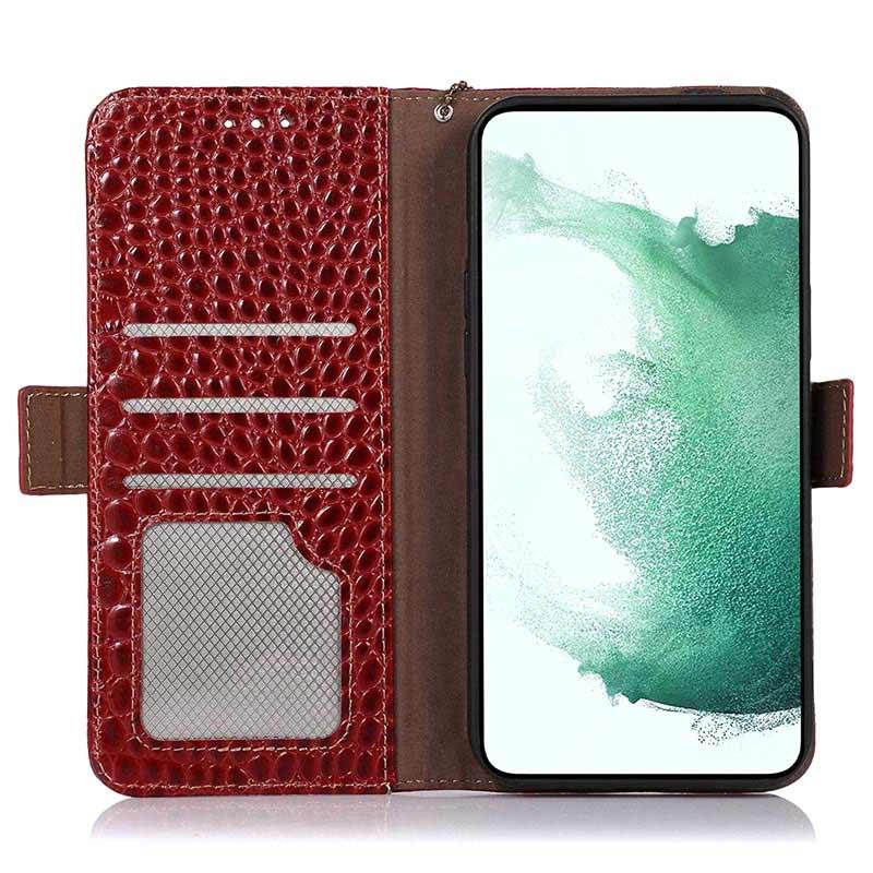 - Dette Lommebok-dekselet i skinn fra Krokodilleserien til Nokia G400 er laget av ekte skinn og TPU