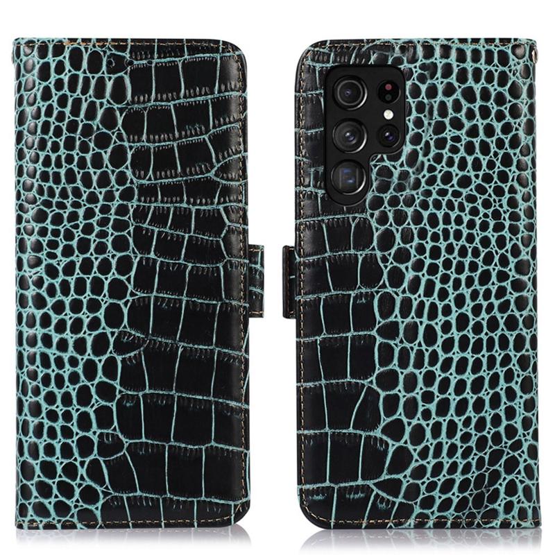 Crocodile Series Lommebok-deksel i Lær med RFID til Samsung Galaxy S23 Ultra 5G