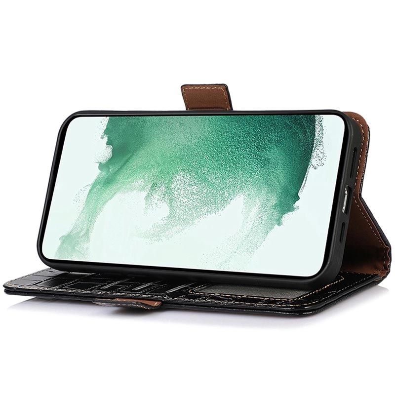 Lommebok-deksel i skinn fra Krokodilleserien viser en enestående stil samtidig som den sikrer full beskyttelse for din Sony Xperia 5 IV mot smuss, støt og hverdagsskader. Et utrolig lommebok-deksel inneholder flere spor der du trygt kan holde kredittkort, ID-kort, kontanter, dokumenter og ett fotospor.