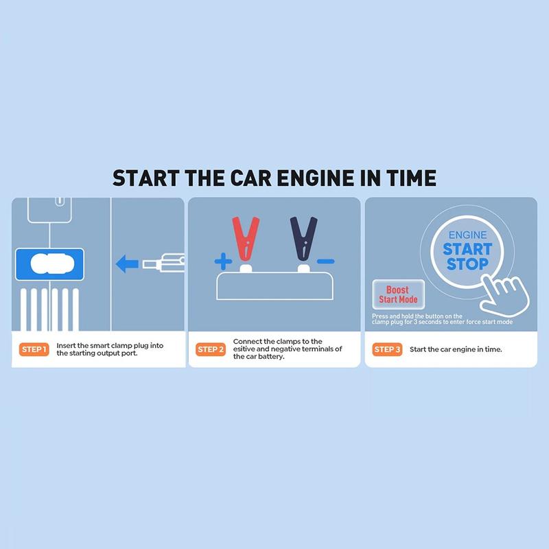 Med en maksimal strøm på opptil 4000 A er CY97 designet for å hjelpe deg med å starte 12V bensin- og dieselbiler raskt og trygt. Den støtter biler opptil 6,0 L bensin og 2,0 L diesel, noe som gjør den nyttig for mange biler og mindre kjøretøy. Det intelligente beskyttelsessystemet bidrar til å forbedre sikkerheten under bruk ved å beskytte mot problemer som feil polaritet, overstrøm, overoppheting, overbelastning og kortslutning.