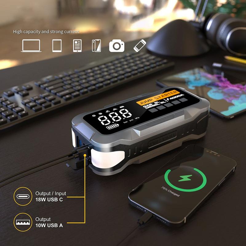 - Bærbar startbooster med opptil 4000 A maksimal strøm
