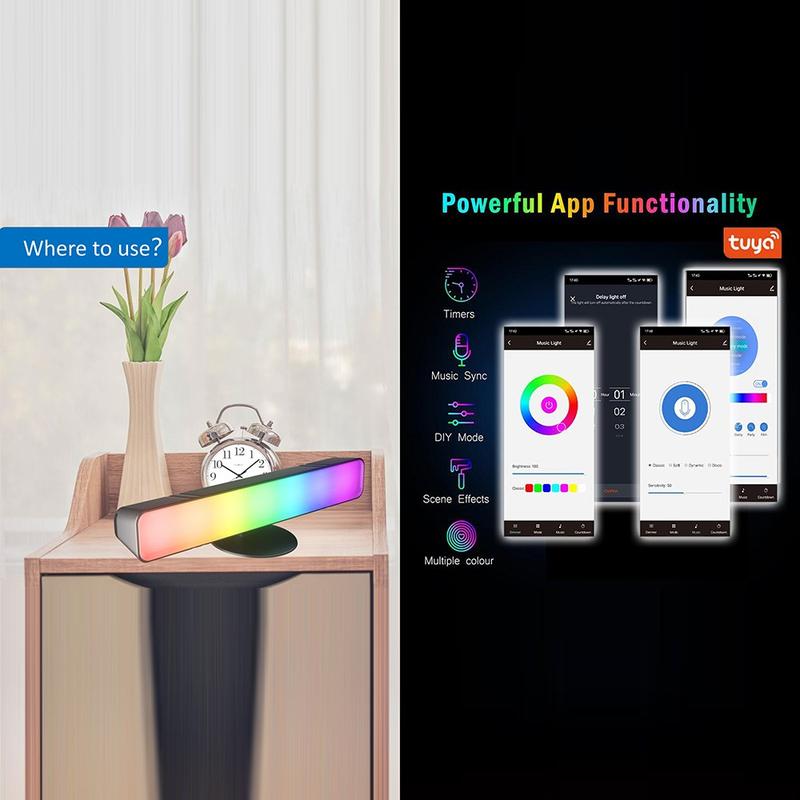 D04 RGB Smart LED-lysstang med fjernkontroll - musikk-synkroniseringsmikrofon, 16 millioner farger, appkontroll, timer, USB-drevet (5 V/10 W) - bordlampe